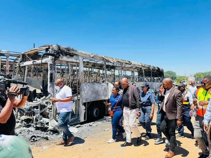 Two Mpumalanga MEC’s, Thulasizwe Thomo(Department of Public Works Roads and Transport) and Jackie Macie(Departments of Community Safety, Security and Liaison), visited the Putco depot at Moloto, in the Nkangala District on Wednesday 29 January 2025, following the alleged arson attack which resulted in 51 buses being torched to ashes.