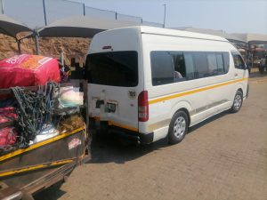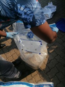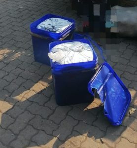 Police have reported that the suspect’s Toyota Quantum minibus, with a North West registration number plate, was searched and a suspicious powder was found inside plastic buckets.